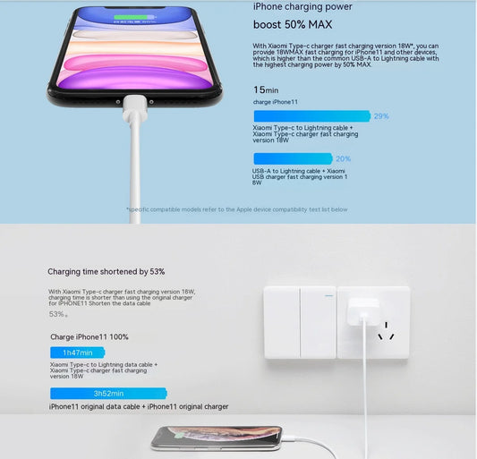 Xiaomi 20W PD USB Type C to Lighting Fast Charger Cable For Apple iPhone 14 13 12 11 Pro Max X XR 8 7 Plus iPad Data Sync Line