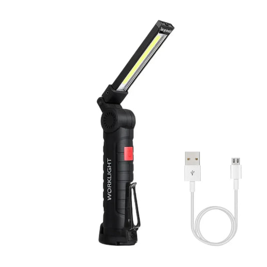 Rechargeable LED Emergency Flashlight Portable COB Folding Work Light 5Modes Waterproof Camping Floodlight With Magnetic & Hook