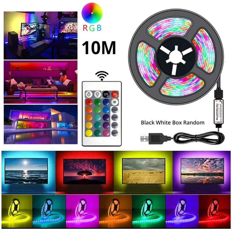 10M USB 2835 LED Strip Light RGB Remote Control Lights Flexible Lamp Tape Ribbon TV Desktop Screen Back Light Diode Tape