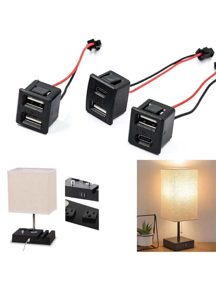 1Pcs Black Double Layer Usb Female Base Type-C Socket and Female Usb Lamp Charging Socket Power Socket With Cable Connector
