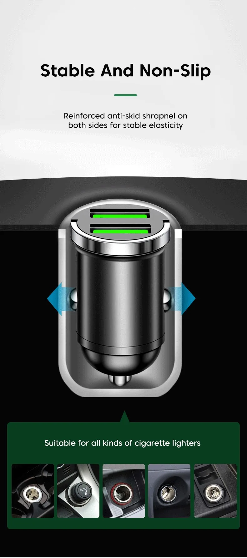 *The compact body fits comfortably and is flush with the lighter socket, without protruding, perfectly hidden inside the lighter. Please do not pop out while driving, and it will not block the lighter cover.