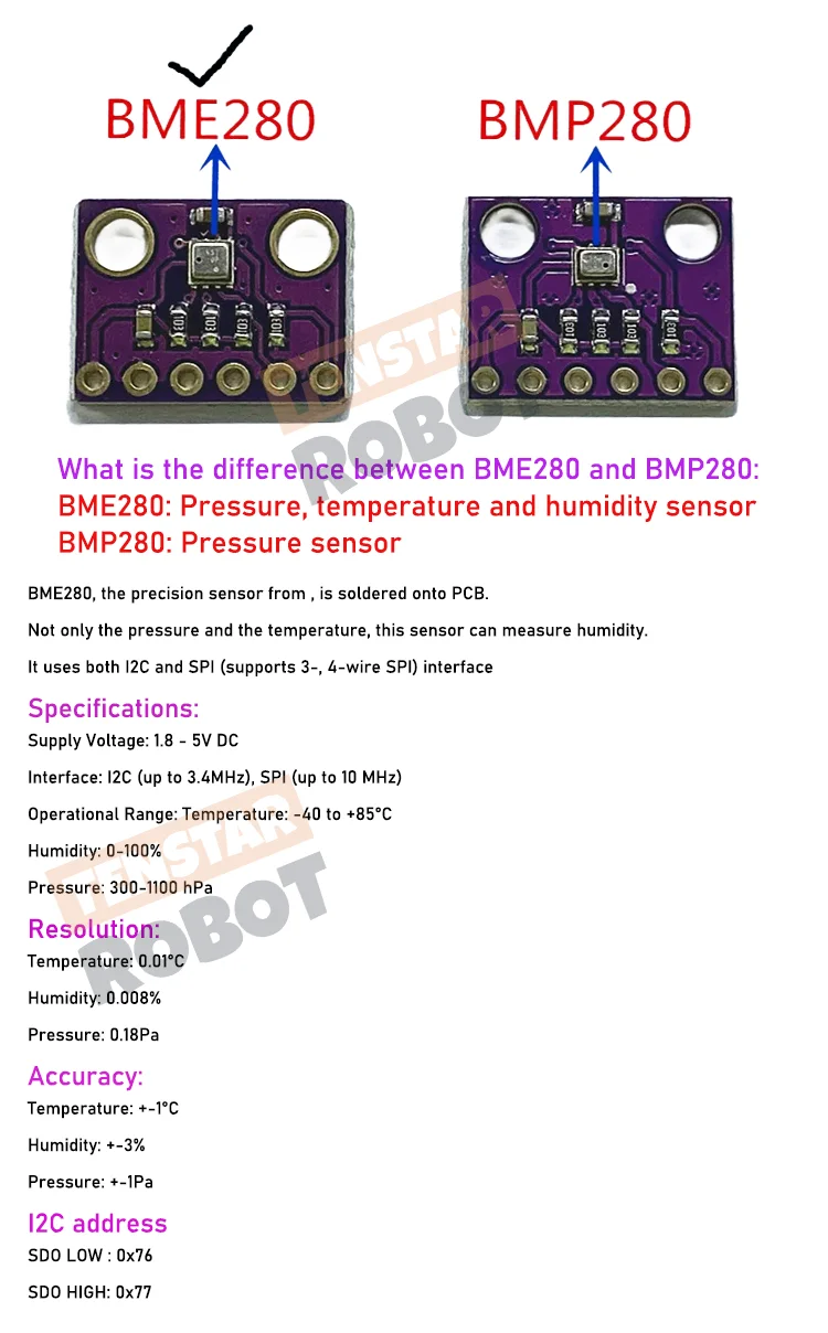 3in1 BME280 3.3V 5V Digital Barometric Pressure Altitude Sensor I2C/SPI High Precision And Humidity Temperature Module
