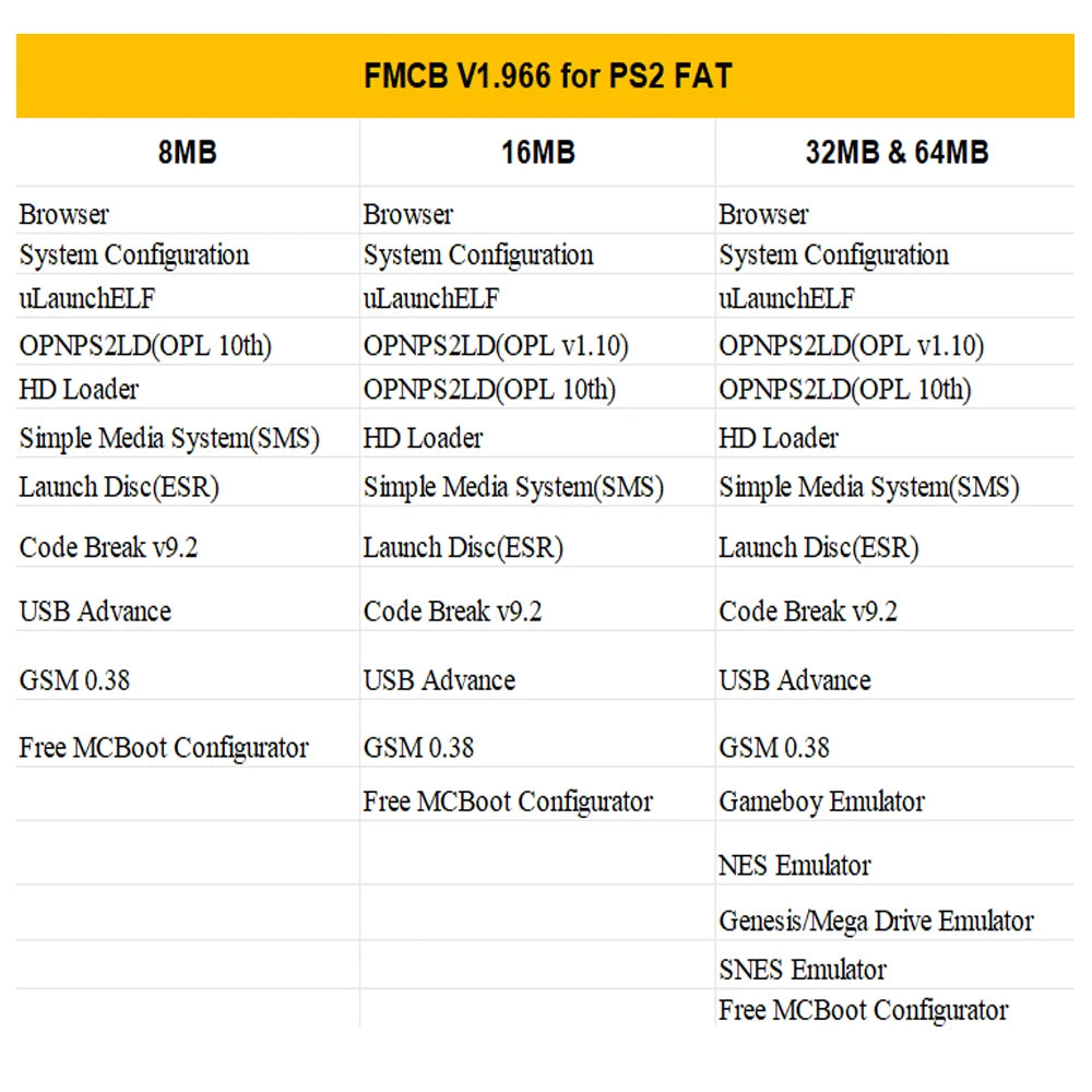 1. Brand New V1.966 FMCB 8MB/16MB/32MB/64MB Free McBoot.