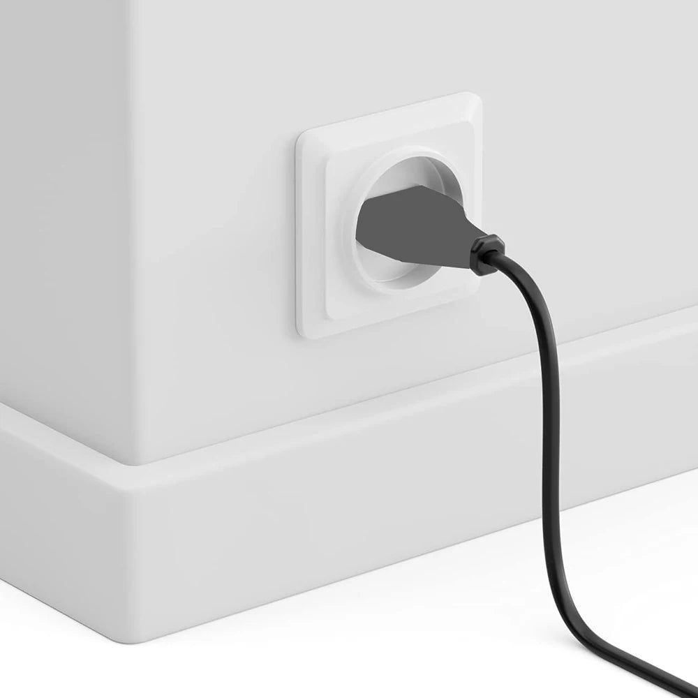 The 2-Prong EU AC power cord range enables a connection between a male type C connector, and a female C7 connector. The power cable has a straight form factor for both connectors.