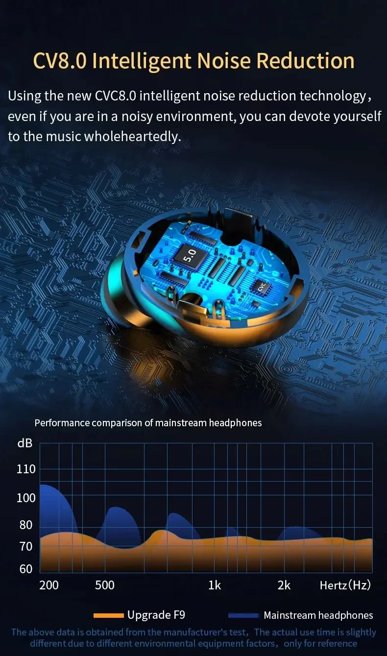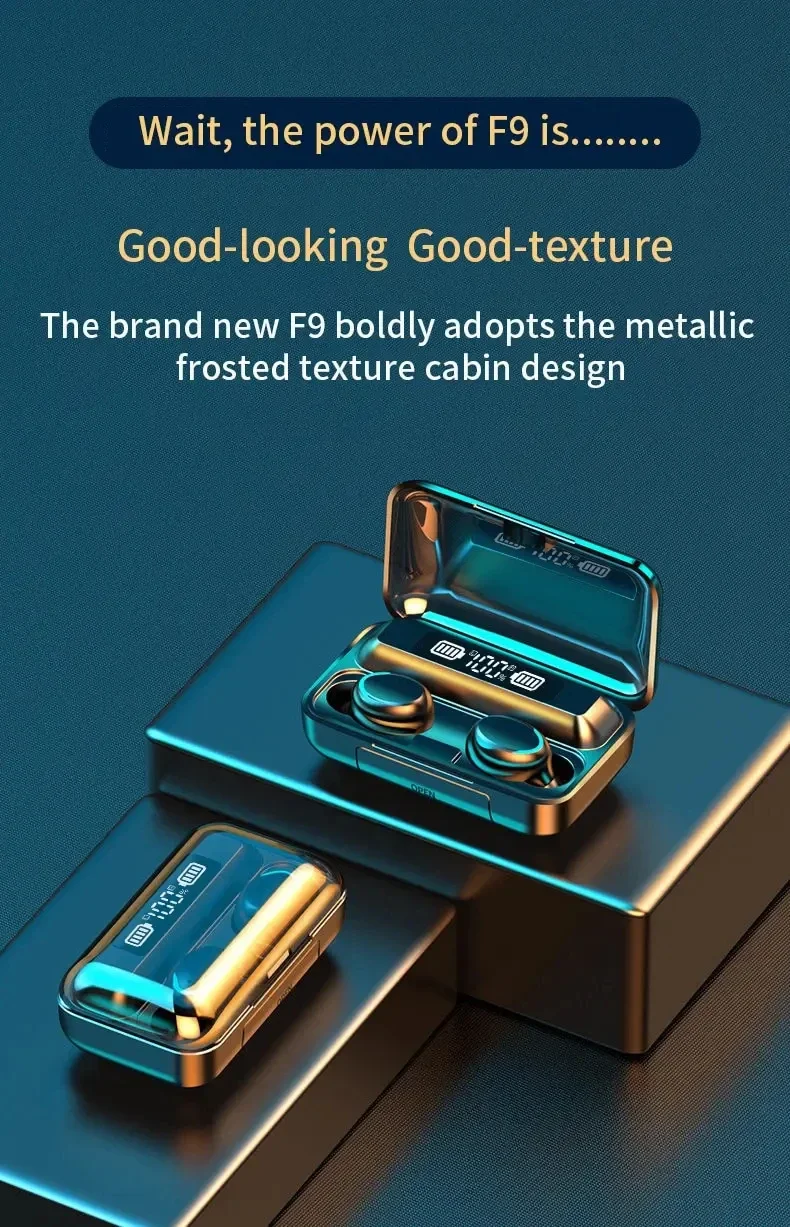 F9 Wireless Bluetooth Headphones Tws Waterproof Earbuds Earphones Digital Display Heaset Large Capacity Charging Case