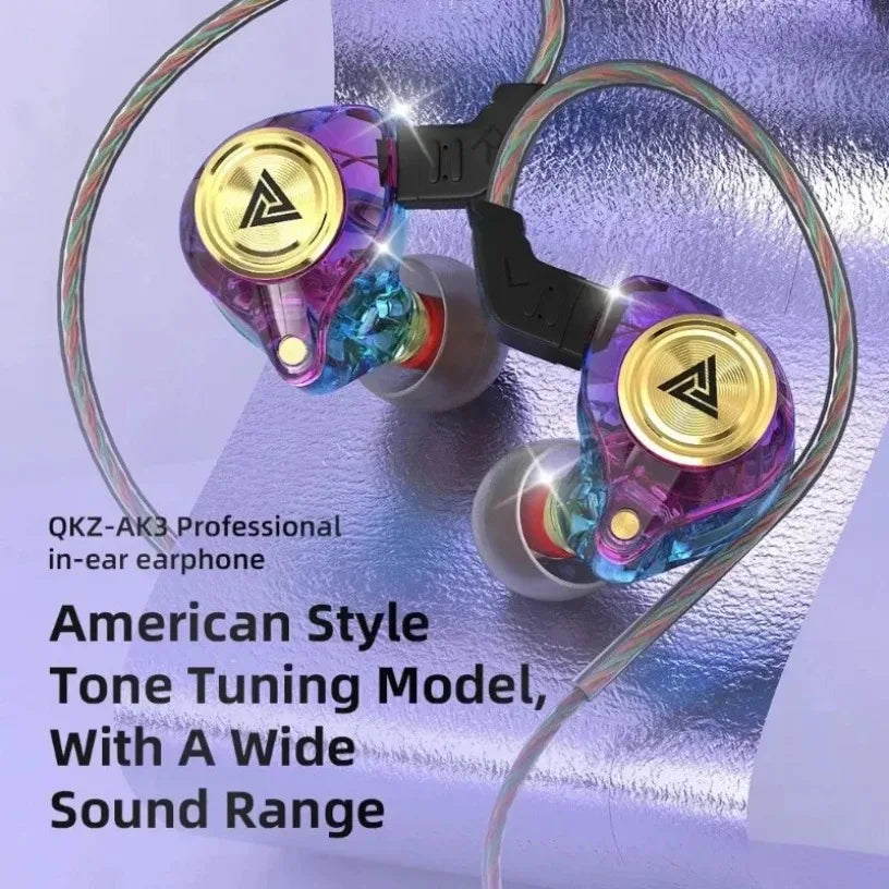 QKZ AK3 FiLe Wired Earphone with Microphone HiFi Music Monitor Bass Headphones Noise Cancelling Headset For Sport Gaming Earbuds