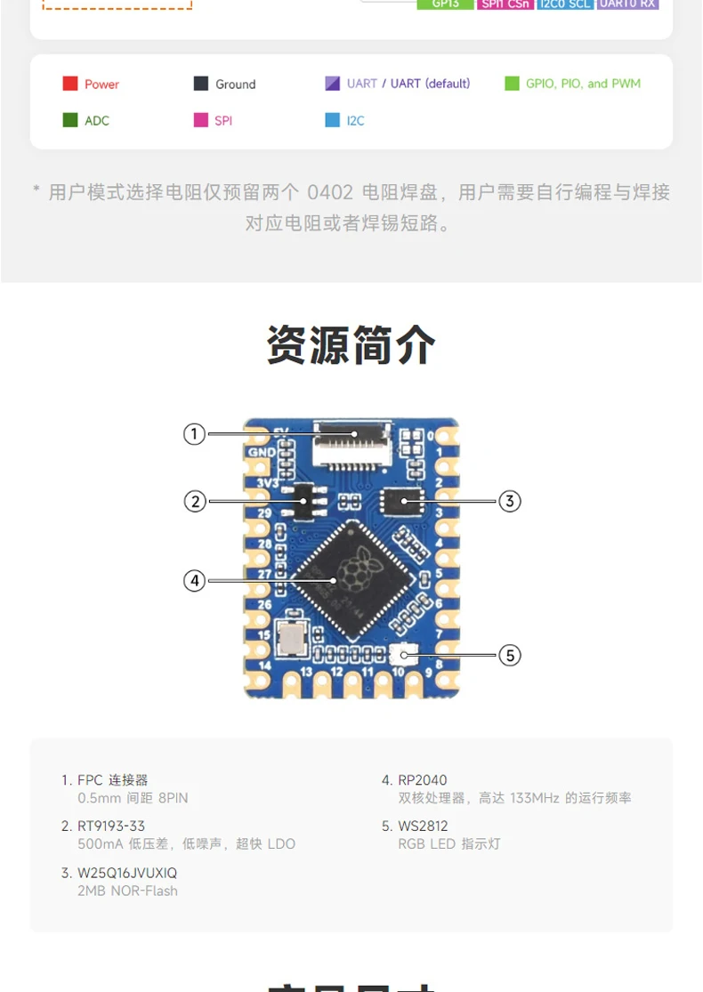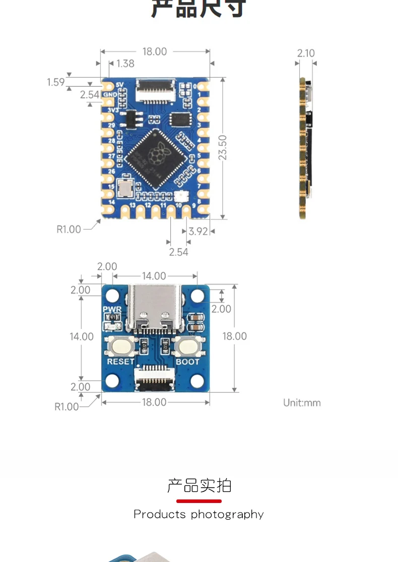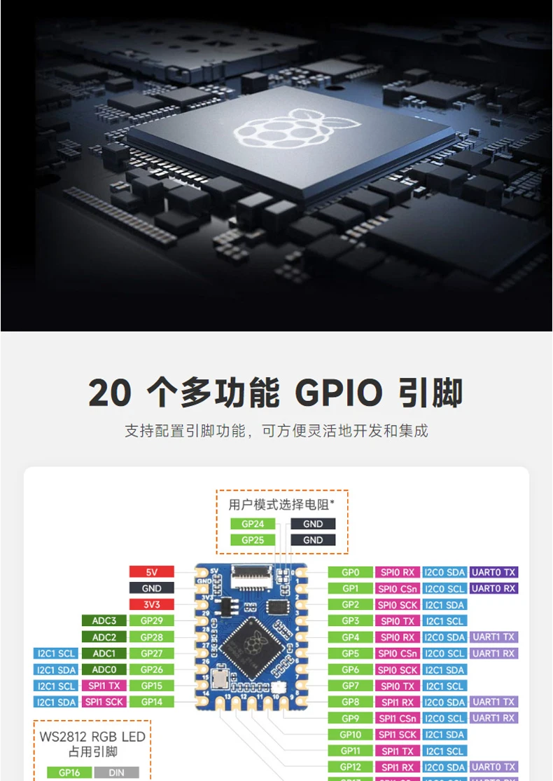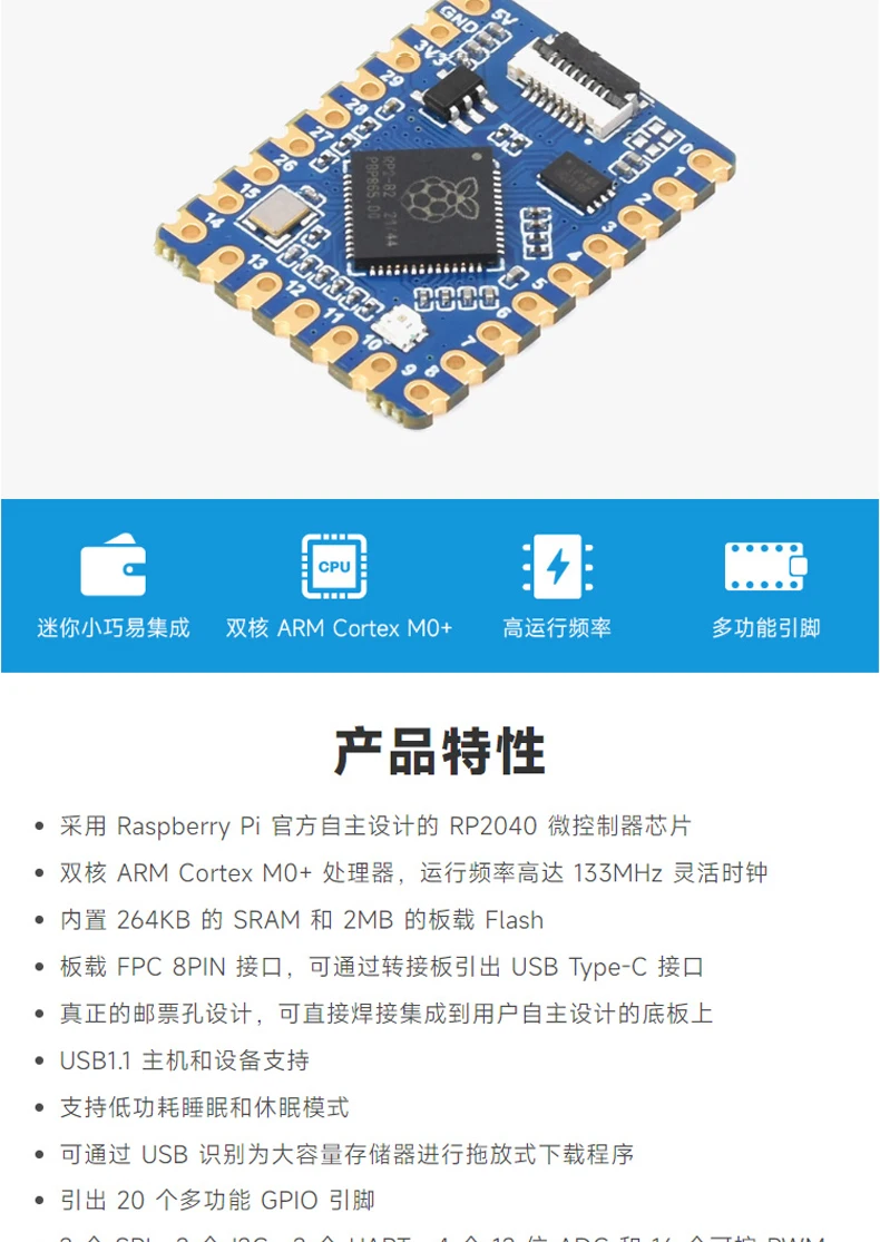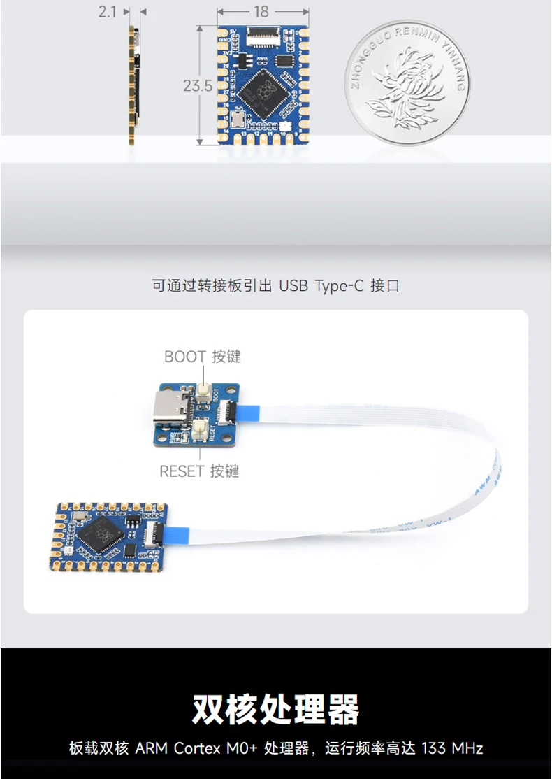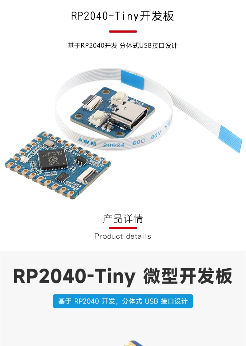 Raspberry Pi RP2040-Tiny-Kit Development Board Module Kit Raspberry Pi RP2040 Dual-Core Split USB Interface