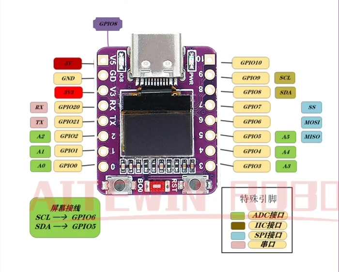 SP32 C3 OLED development board is based on ESP32C3FN4/FH4, which is designed and produced core boards.