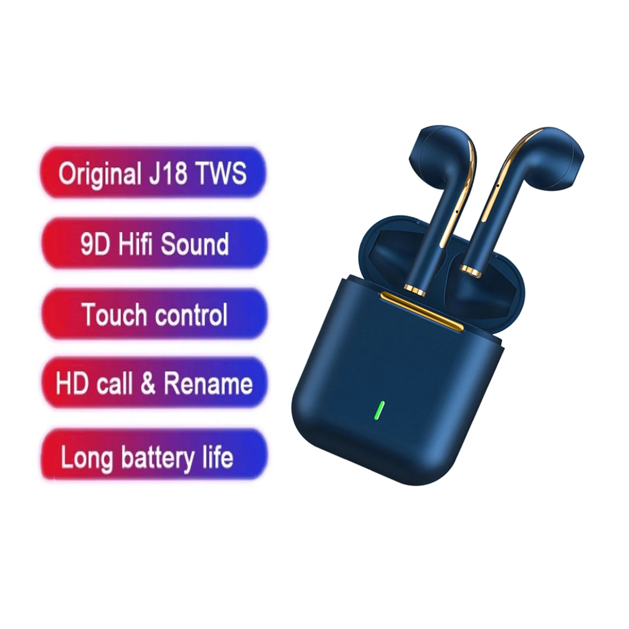 J18 TWS Wireless Earbuds, 5.3 Bluetooth Headphones Long Playtime, Noise Cancelling Voice Call, for Gaming, Business & Sports